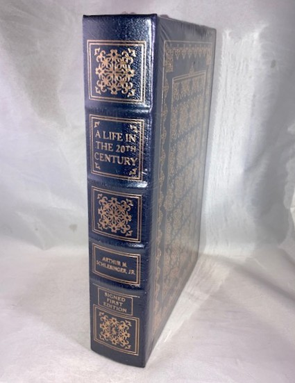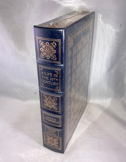 Hardcover, full decorative dark blue leather. Brand new copy in factory shrink-wrap. A quality Easton Press production with all the refinements that go to make this a truly fine binding: bound in satin ribbon marker, all edges gilt, raised spine, 22kt gold stamping, smyth-sewn binding, silk moire end-papers, acid free archival paper and full genuine leather binding. Signed by author and limited to 1,100 copies with Certificate of Authenticity and Notes. The first volume in Schlesinger’s memoirs the sub-title reads ‘Innocent Beginnings 1917-1950’. Brand new copy in pristine condition.