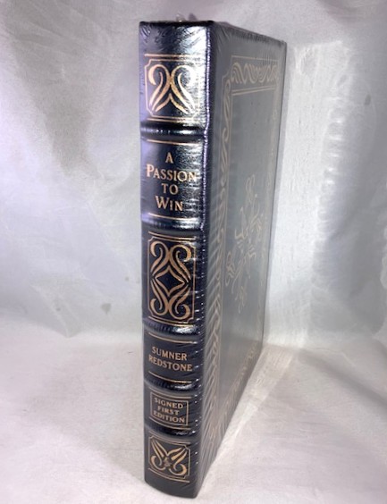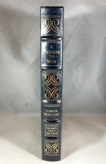 Hardcover, full decorative black leather. Brand new copy in factory shrink-wrap. A quality Easton Press production with all the refinements that go to make this a truly fine binding: bound in satin ribbon marker, all edges gilt, raised spine, 22kt gold stamping, smyth-sewn binding, silk moire end-papers, acid free archival paper and full genuine leather binding. First limited edition. Signed by author and limited to 1,100 copies with Certificate of Authenticity and Notes. Sumner Redstone reveals how he battled his way to become the head of one of the world’s great media empires, and the richest man in entertainment. His vast media and entertainment empire encompassed Paramount Pictures, MTV, Nickelodeon, Blockbuster, Simon & Schuster, and CBS. A riveting business autobiography presented in a lavish Easton Press format. Brand new copy in pristine condition.