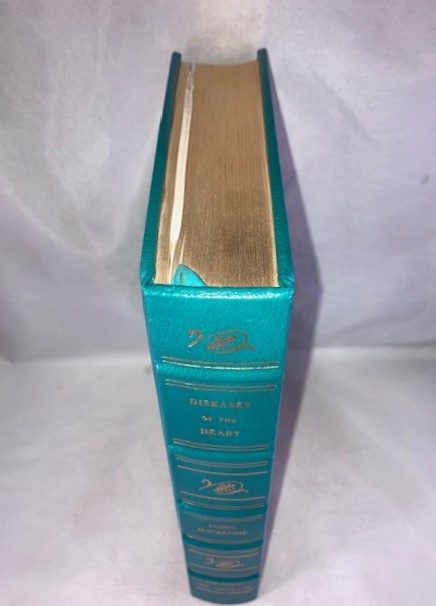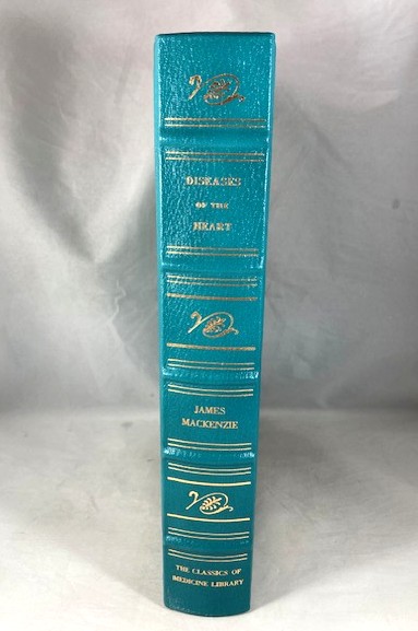 Hardcover, bound in genuine top-grain blue teal pigskin with raised spine stamped in gold and cover stampings and design by Daniel B. Bianchi and Selma Ordewer in 22kt gold. 386 pages. All edges gilt. Additional refinements include bound in silk ribbon marker and specially commissioned marbled end-papers by Richard J. Wolfe. Four Appendices, Bibliography and Index. Illustrated with numerous reproductions of audio readouts of the heart, several of which are fold-out, akin to modern ekg’s. Publisher’s small personalized paper label with original subscribers name affixed to blank verso of front free end-paper, indicating that this is copy 921. This special limited facsimile edition was prepared from the first edition of 1908 (Oxford Medical Publication), courtesy of The Reynolds Historical Library. First edition thus. No previous ownership marks but book-plate. A clean, fresh unmarked and unread like new copy. As new.