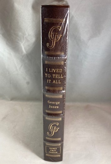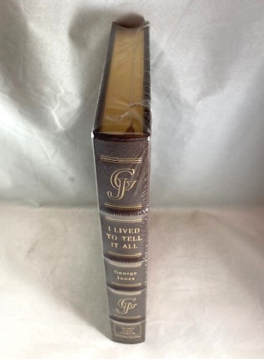 Hardcover, bound in full genuine brown gilt-stamped leather binding. xii, 333 pages. Brand new copy in factory shrink-wrap. A quality Easton Press production with all the refinements that go to make this a truly fine binding: bound in satin ribbon marker, all edges gilt, raised spine, 22kt gold stamping, smyth-sewn binding, silk moire end-papers, acid free archival paper and full genuine leather binding. Color paste-down mounted on front cover within triple ruled frame. Illustrated with 32 unnumbered pages of plates and portraits. Limited First signed and numbered edition, published by Easton Press, 1996, signed by author George Jones. One of 1,500 copies, with COA (Certificate of Authenticity) and Collector’s Notes laid-in loose. Often referred to as “The Rolls-Royce of Country Music”, Jones had 160 chart singles to his name from 1955 to 2013, the year of his death. This Easton Press limited deluxe signed autobiography was written by Jones with the aid of Tom Carter. A pristine copy, gift quality, new is shrink wrap.