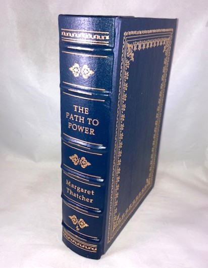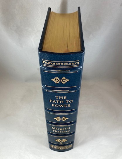 Hardcover, bound in full genuine dark blue gilt-stamped leather binding. xiv, 656 pages. Appendices, Index. Illustrated with numerous black and white photographs. A quality Easton Press production with all the refinements that go to make this a truly fine binding: bound in satin ribbon marker, all edges gilt, raised spine, 22kt gold stamping, smyth-sewn binding, silk moire end-papers, acid free archival paper and full genuine leather binding. Limited First signed and numbered edition, published by Easton Press, 1995. One of 3,000 copies, this being number1,089, personally signed by Margaret Thatcher on limitation page. In this autobiography, a sequel to “The Downing Street Years”, Thatcher “writes for the first time about her personal life, about the formation of her character and values, and about the training and experiences which led to the 1979 election victory”. No previous ownership marks. Blank, unused Easton Press book-plate laid-in loose. A clean, fresh and unmarked copy. Fine.