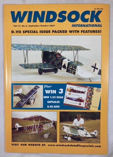 Large format paperback, staple bound magazine in color pictorial covers. 32 pages. Profusely illustrated in chiefly black and white and several pages in color. Original issue. The finest resource for World War One Aeroplane Enthusiasts and Modellers. This special D.VII issue includes, in addition to kit reviews, books, accessories, plan features, etc., Greg Van Wyngarden taking a look at some ‘Dubious D.VIIs’; Gary Sunderland’s 1:4 scale R/C D.VII; D.VII hybrid that will prove beneficial to all D.VII modellers and a look at the Roden 1:72 scale D.VII series (both kit reviews). Departing from Fokker, part 5 of Alberto Casirati’s ‘Camouflage and Markings of Italian Two-Seaters’ closes the issue, featuring the Caudron G.3 and G.4. No previous ownership marks. A sound, well preserved copy. Fine.