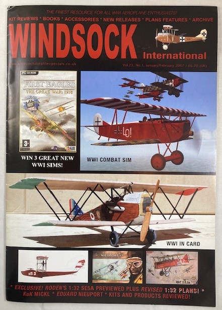 Large format paperback, staple bound magazine in color pictorial covers. 32 pages. Profusely illustrated in both color and black and white. Original issue. The finest resource for World War One Aeroplane Enthusiasts and Modellers. This issue includes, in addition to kit reviews, books, accessories, plan features, etc.: ‘First Among Eagles – WWI sim; 1:72 scale scratch-built crewmen; part 6 of Geroge Haddow’s guide to WWI Austro-Hungarian Naval Aeroplanes – Albatros (Mickl) A.12/S1-S6; Revised drawings (1:32 scale) for the RAF SE5a; et al. No previous ownership marks. A sound, well preserved copy. Very good.